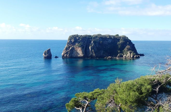 Kyra Dikia is essentially a rock that rises to a height of approximately 30 m. from the sea, with a surface area of approximately 4,000 sq. m. and a perimeter of 290 meters and is located approximately 150 meters from the coast.