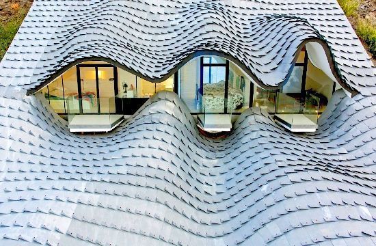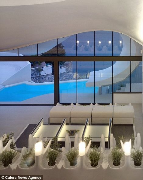 With its curved roof, large glass window and outdoor pool, the unusual property makes for an eye-opening spectacle.