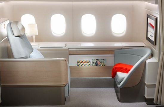 The seat folds out into a real 2-metre bed and its “sleep” position enables passengers to enjoy a good night’s rest in a real bed. It has an additional mattress with a feather duvet, a pure Merino wool blanket, a “boudoir” cushion, an anti-allergy feather pillow with an embroidered cotton pillowcase edged with openwork.