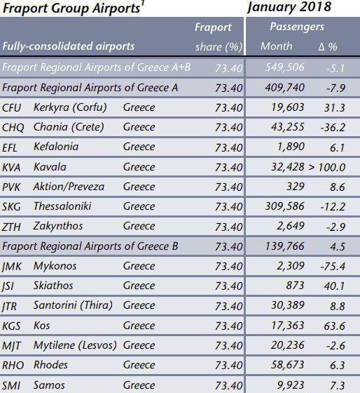 Passenger traffic at the 14 regional airports run by Fraport Greece in January 2018 dropped by 5.1% compared to the corresponding month of 2017, with passengers totaling 549,506 passengers.