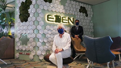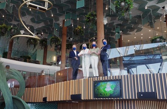 Exclusive interview of Joanna Rzymowska, Vice President of Celebrity Cruises for Europe, Middle East, and Africa to Tornos News publisher Giannis Giannakakis, onboard the new Celebrity Apex cruise ship in Piraeus port, on June 4, 2021.