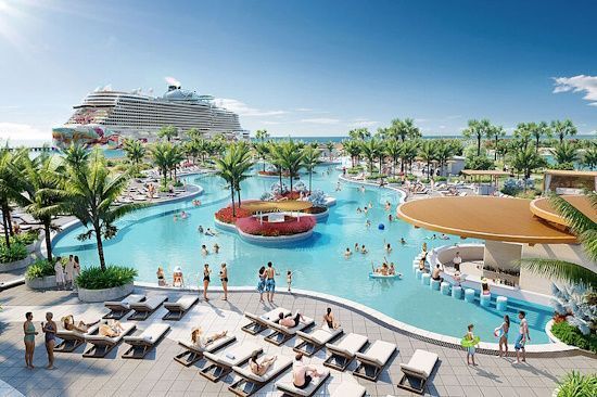 Additional amenities are also set to be built on the cruise line’s private island, Great Stirrup Cay, in the Bahamas, by the end of 2025, NCL President David J. Herrera said. Plans include a heated pool with a swim-up bar, a children’s marine play area, and an adults-only beach club. A new pier will allow multiple ships to dock at the same time.