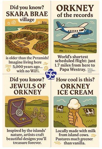 “Did you know that the ancient village of Skara Brae is older than the Pyramids? Imagine living here 5,000 years ago… without Wi-Fi.”