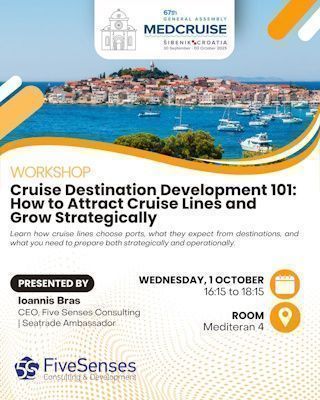 Ioannis Bras, CEO of Five Senses Consulting, delivered a workshop on cruise destination development, presenting practical tools such as SWOT and Trend Analysis, Cruise Excursion Books, and Port Evaluation Reports. The discussion focused on how destinations can shift from being potential options in itineraries to becoming must-call ports, a message that resonated strongly with delegates aiming to strengthen their competitive positioning.