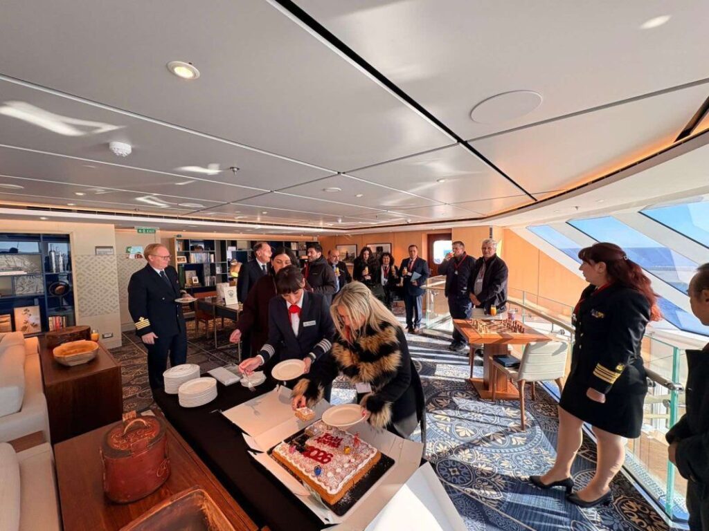 The Municipality of Rhodes held the customary official reception for the captain, officers, crew, and of course the passengers. Attendees included the President of the South Dodecanese Municipal Port Fund Vasilis Vagianakis, Deputy Mayor of Communications Giorgos Pattas, CEO of the Rhodes Tourism Promotion Organization (PROTOUR) Anastasios Konstantaros, Director of Technical Works of the Port Fund Marika Deligianni, Head of the Public and International Relations Department of the Municipality of Rhodes Maria-Agapi Karampini, as well as Head of Promotion and Information of the Tourism Department Vlasis Fakiolis.