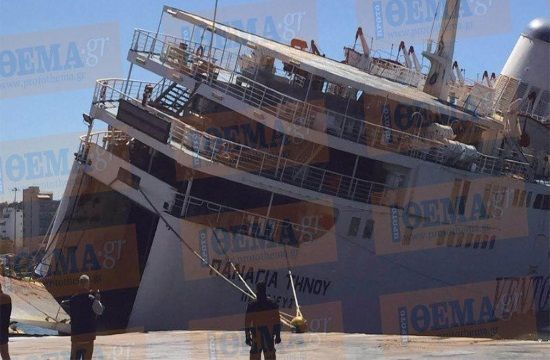 The ship half-sunk at the port of Piraeus in April 27, 2016, after it capsized and started taking in water. It had been docked since April 2015 when its operator Ventouris Sea Lines announced it was facing financial problems.