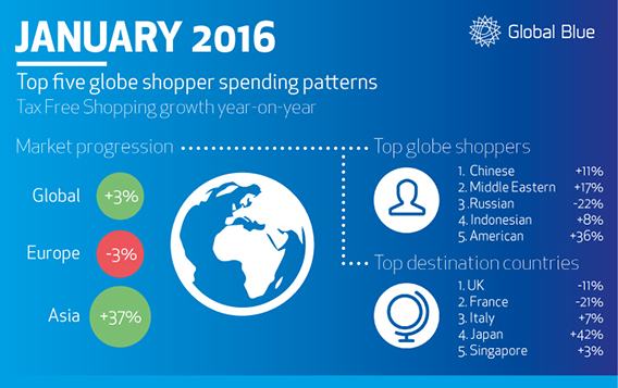 Despite hopes that recent changes in the visa application process for Chinese entering the UK would boost their spending patterns, TFS sales performance is down further, to -11% for January YoY. But it is early days, says Gordon Clark, Global Blue’s UK country manager, who is looking to February’s sales performance over Chinese New Year to provide a Q1 2016 sales peak.