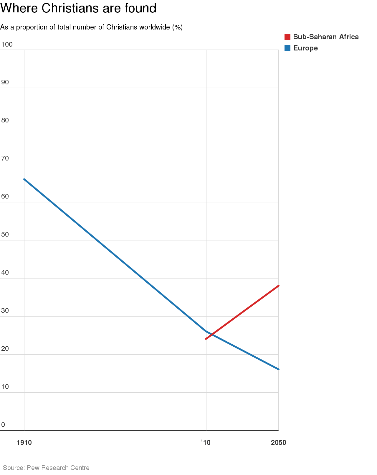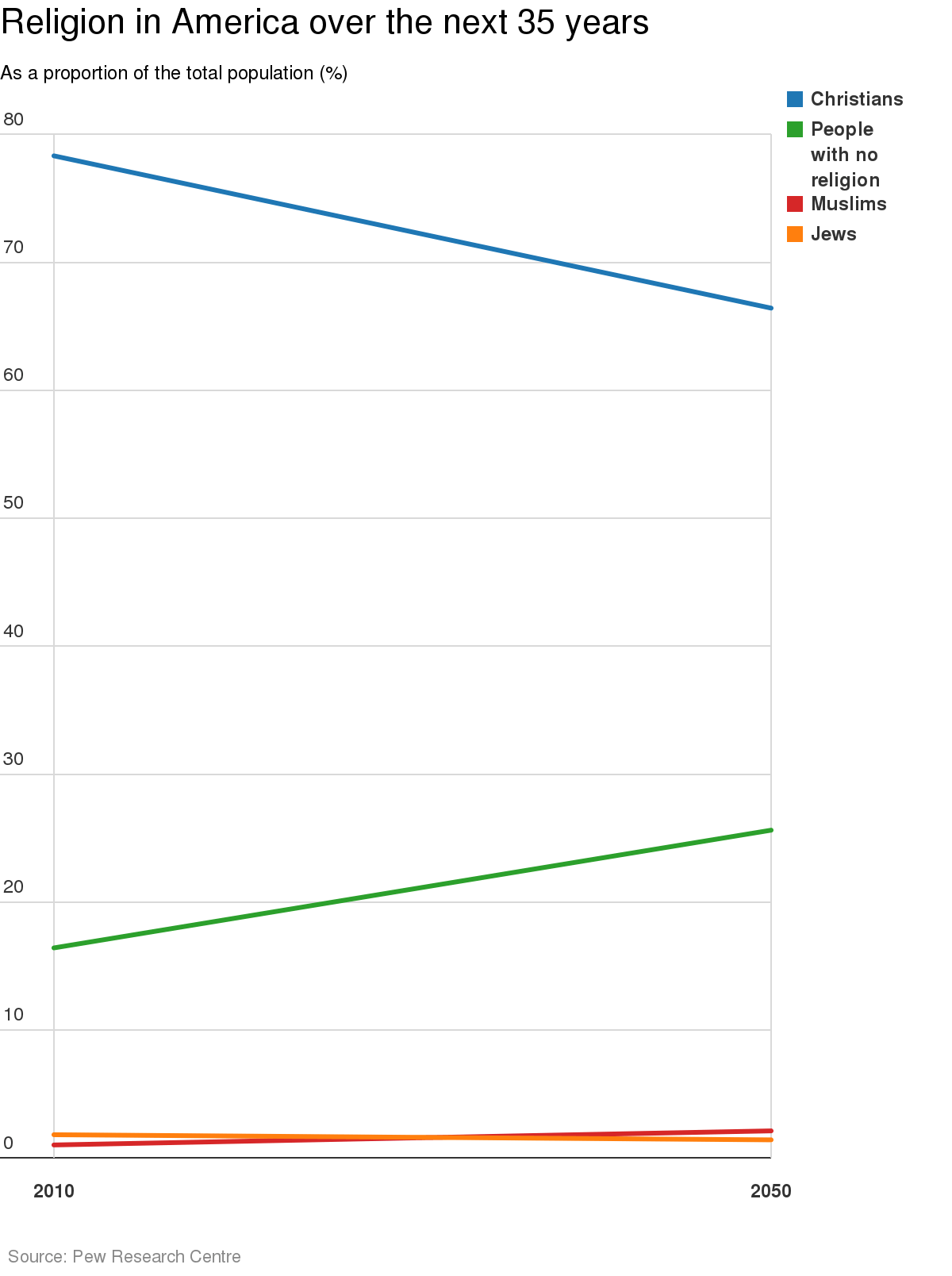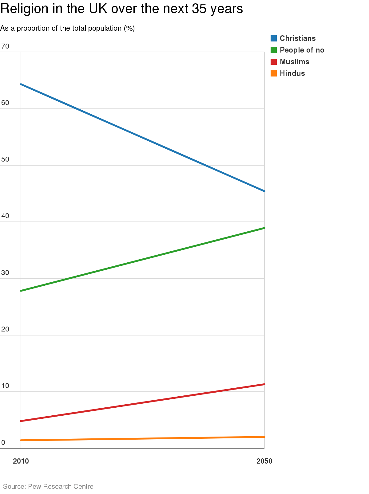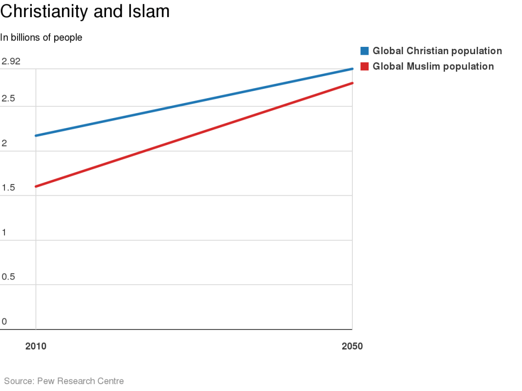 The Pew Research Centre released data from its Global Religious Futures project, which forecasts the changing size of eight major religions over the next half century.
