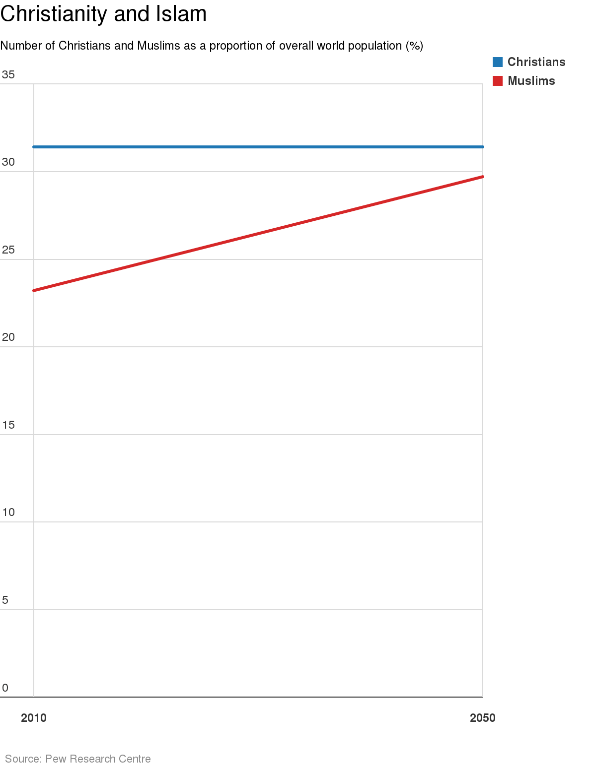 The study is based on demographic factors in 198 countries including fertility, age and life expectancy. The global Christian population will remain stable over the next 35 years, despite Muslims being the fastest-growing religious group.