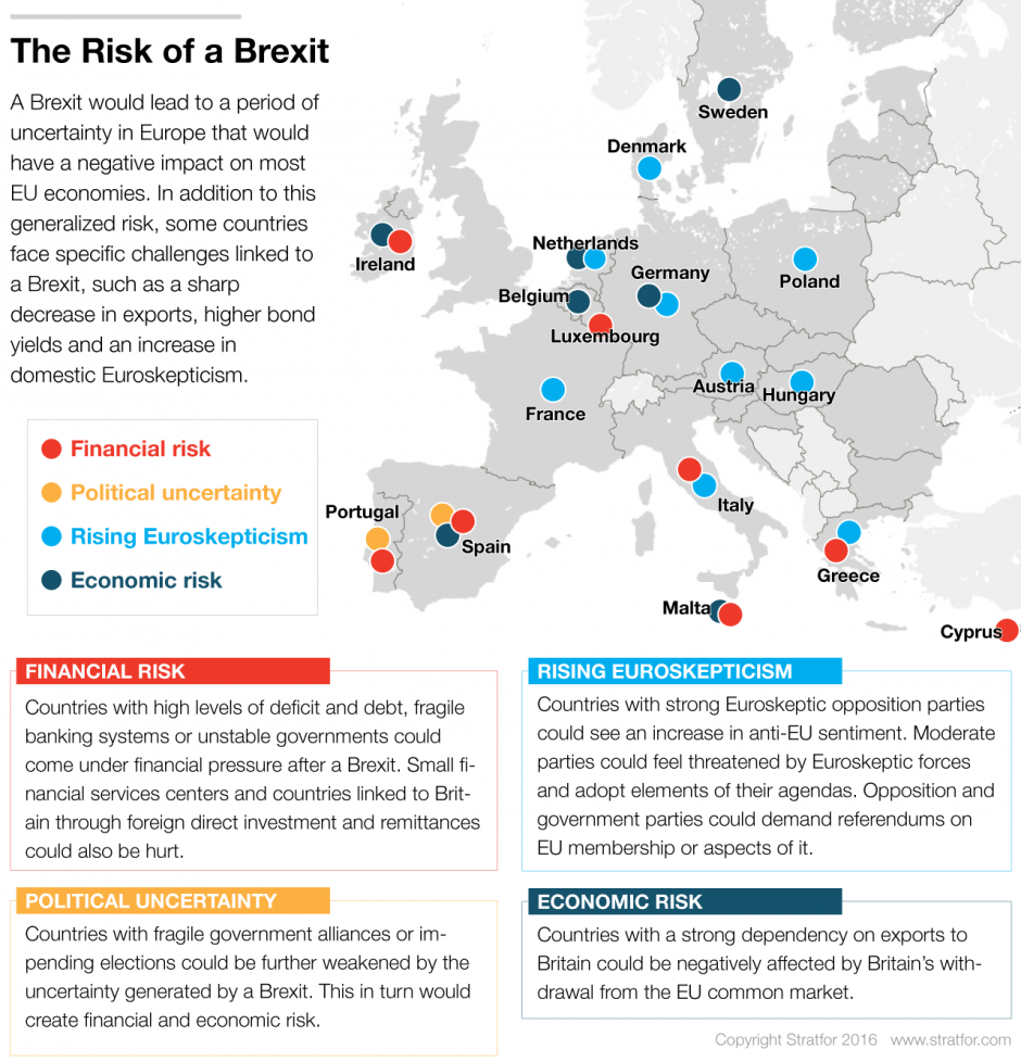 From a political point of view, the referendum could lead to the resignation of British Prime Minister David Cameron, who campaigned heavily for his country to remain in the European Union. Considering the frictions among the ruling Conservatives (roughly half the party’s lawmakers supported the “leave” camp), new elections before the end of the year in Britain cannot be ruled out. The results will also reignite independence demands in Scotland and, to a lesser degree, Northern Ireland.