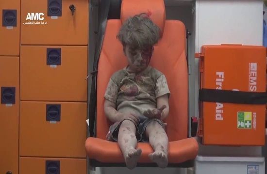 Omran, five, was filmed covered in dust and blood after his home was hit.