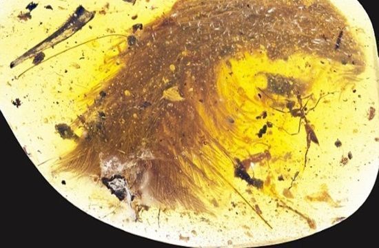 The tip of the tail was found preserved in an ancient blob of amber tree resin.