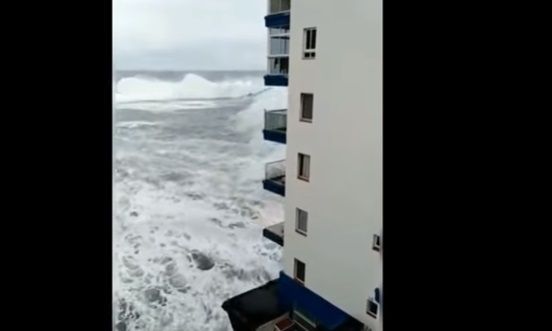 Video shows waves reaching the third-floor of a block of flats in Mesa del Mar in the north-west of Tenerife.